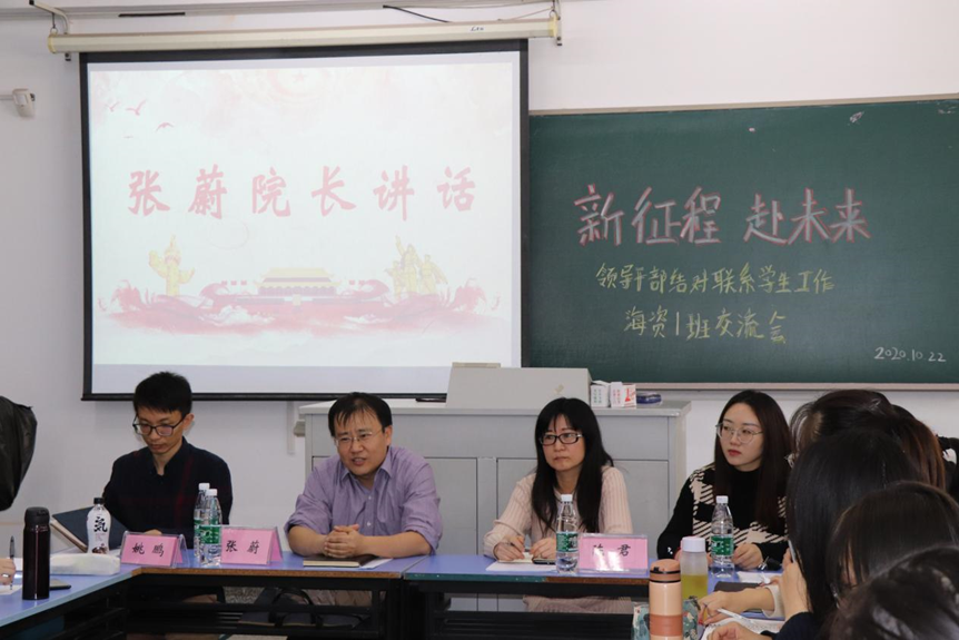 近期,“新征程,赴未来——学院领导结对联系2019级海资1班”在江宁校区致用楼504教室举行。高清av 张蔚副院长、海岸带资源与环境研究所陈君副所长、海资1班班导师姚鹏、2019级辅导员廖芳艺参加此次座谈会,与海资1班全体同学开展新学期的交流。