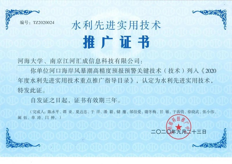 近日,水利部发布了《2020年水利先进实用技术重点推广指导目录》,由高清av 陈永平教授主持研发的“河口海岸风暴潮高精度预报预警关键技术”成功入选。该技术采用多要素耦合、多尺度嵌套和多数据融合手段,构建了近岸天文潮-风暴潮精细化预报模型和多层次实时修正模型,实现了河口海岸风暴潮动力过程的精细模拟和精准预报;在云平台、云集成技术支撑下,构建了云架构下的河口海岸风暴潮预报预警业务化系统,实现了风暴潮期间河口海岸综合潮位的高精度、高时效业务预报。技术成果已在江苏、上海、浙江和广东沿海水利防汛部门进行了成功应用,取得了显著的防灾减灾效益,具有重要推广应用价值。