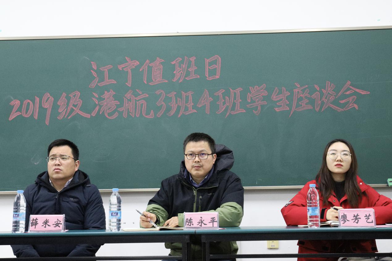 2020年12月8日下午14时,江宁值班日—2019级港航3班4班学生座谈会在江宁校区励学楼A209举行。高清av 陈永平副院长、2019级港航4班班导师薛米安老师、辅导员廖芳艺老师出席了本次座谈会。