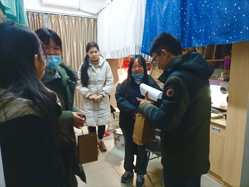 走访宿舍过程中,各班班导师与班级同学们展开了亲切交谈,询问了同学们期末复习情况,并提出了有计划复习的指导建议,同时殷切关心同学们在第二次寒潮来临之际的身体状况。同学们向老师说明了自己的近期情况和对期末考试所作的准备,并认真听取了老师的建议。最后,班导师分别为每一位同学都送上了精心准备的暖宝宝,并表达了学院对同学们的关心,鼓励同学们积极备战期末。