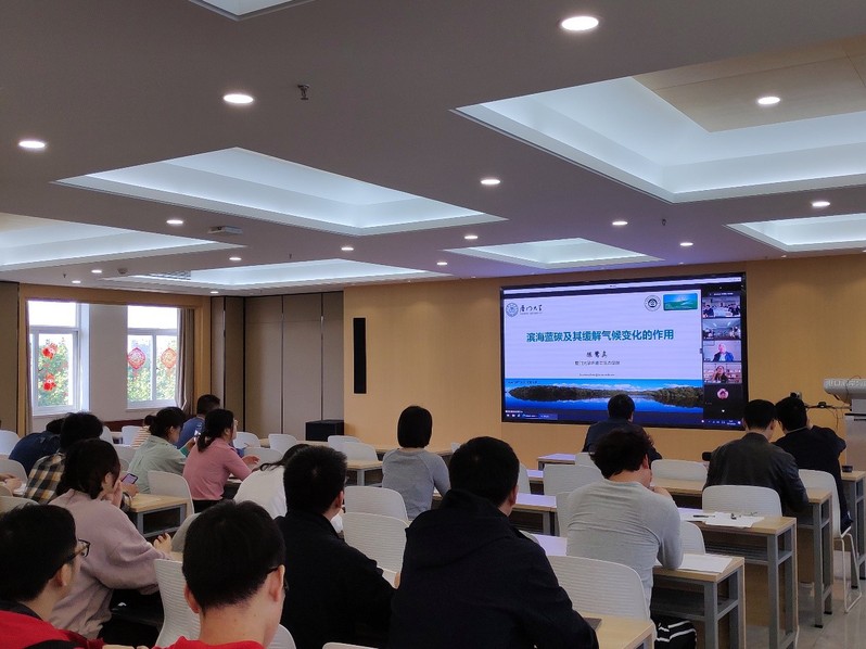 4月29日上午,厦门大学陈鹭真教授(线上)和南京大学张永光教授(线下)应邀在严恺馆702分别作了题为“滨海湿地蓝碳及其缓解气候变化的作用”和“全球碳收支及陆地碳循环进展”的学术报告。会议由高清av 陈永平副院长和水电学院辛沛副院长联合主持。陈鹭真教授重点介绍了海洋蓝碳生态系统、红树林碳储量评估和“蓝碳”发展模式。张永光教授则从全球碳排放、全球碳收支以及陆地生态系统碳收支三个方面对全球变化和碳循环遥感等科学问题进行了分享。报告结束后,与会师生分别就两位教授的报告内容开展了充分讨论,拓展了高清av 师生在滨海湿地生态系统的固碳能力以及全球的碳收支等研究领域的认识。本次学术活动也是海工所“海工学坛”系列活动之一。