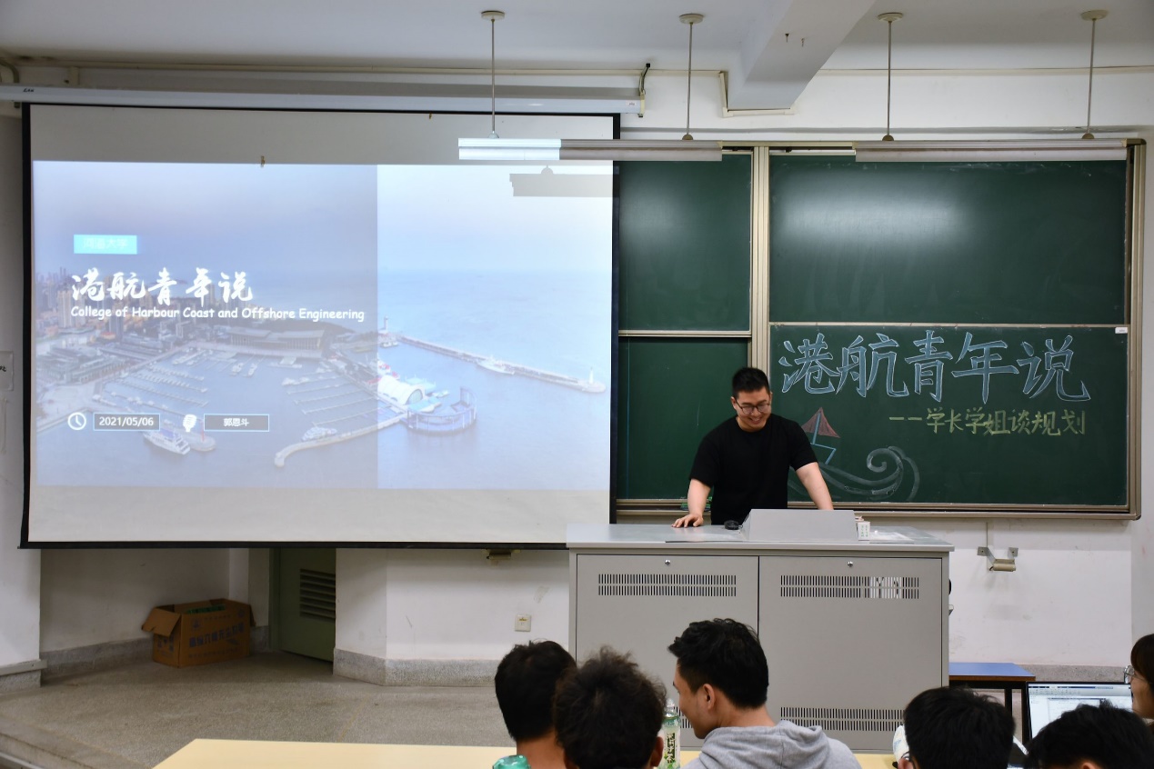 丁星宇向同学们讲述了港航、海资专业同学的就业方向,告诉同学们要多锻炼自己的写作、办事、沟通交流等方面能力,并且一定要坚持锻炼自己的身体,让同学们获益匪浅。