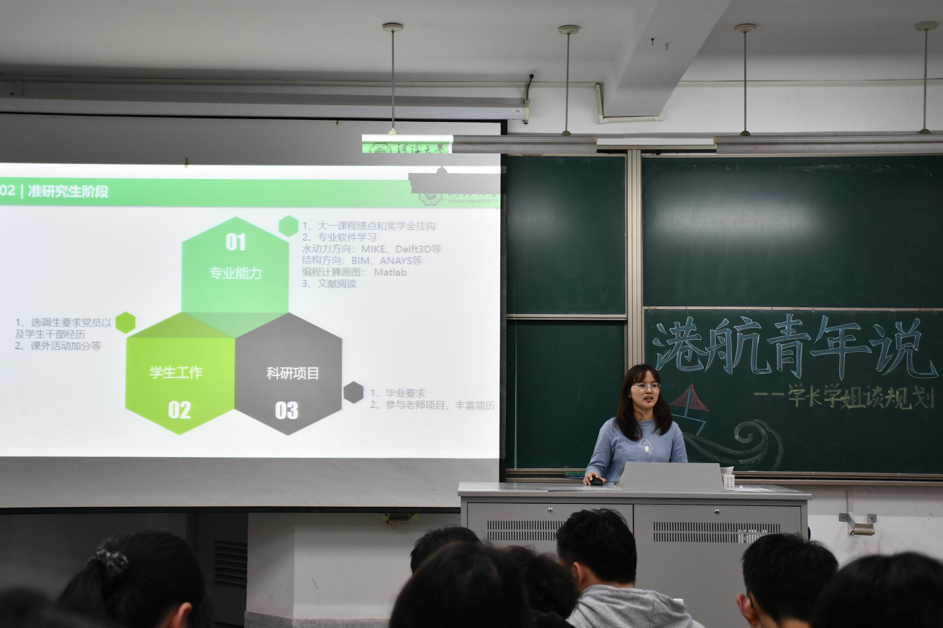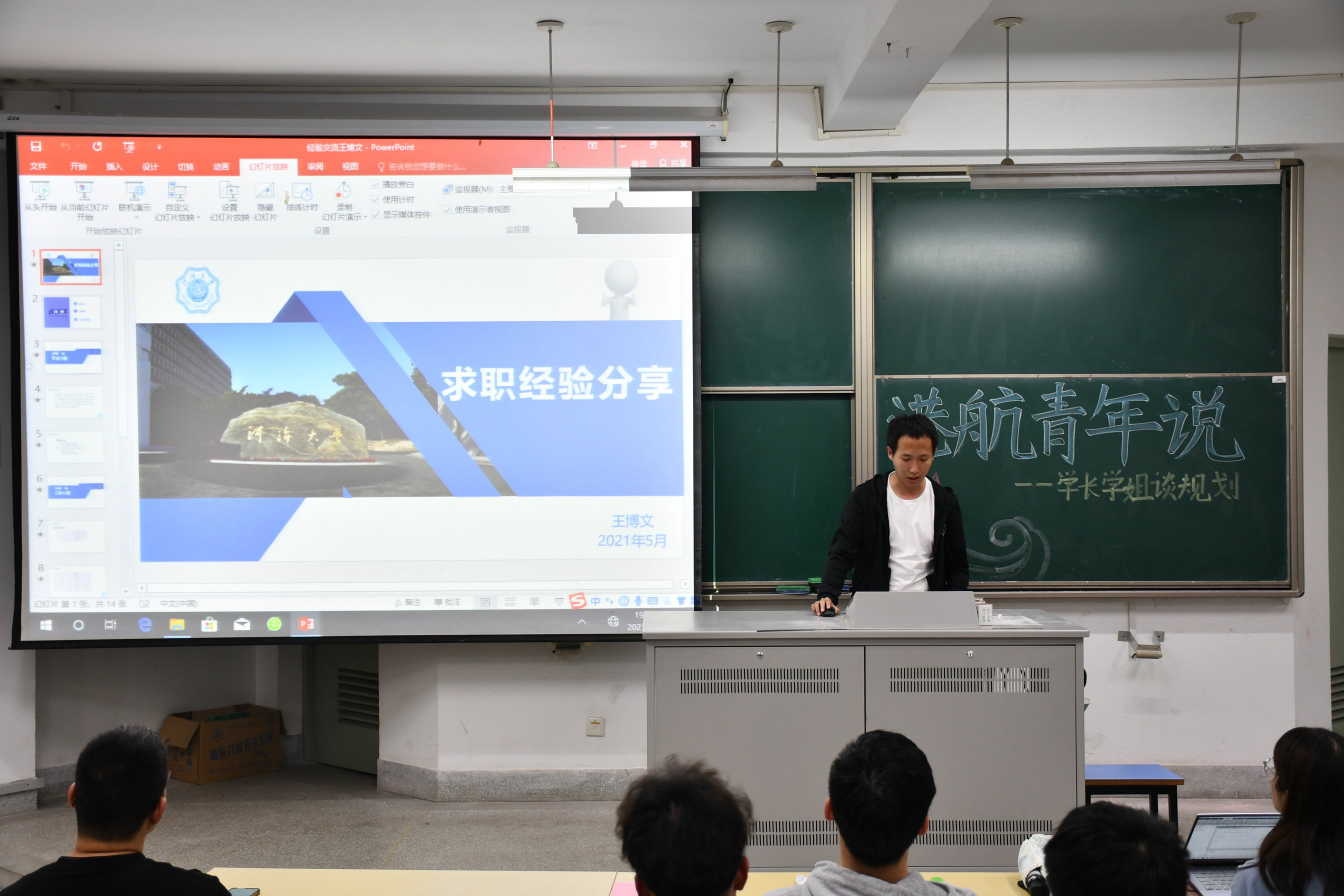 2021年5月6日,高清av “港航青年说”—学长学姐谈规划于江宁校区勤学楼5112举行。本次活动邀请了高清av 研究生沈倩颖、丁星宇、王博文和本科生张颖男、张恩斗作为主讲嘉宾,向2019级学生分享大学生职业生涯规划经验。