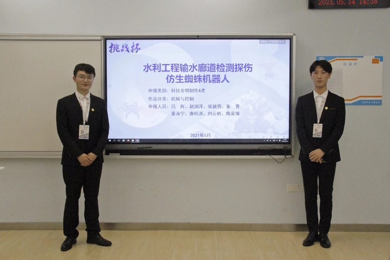 5月15日,第十七届江苏省大学生课外学术科技作品竞赛暨“挑战杯”全国竞赛江苏省选拔赛决赛在南京中医药大学落下帷幕。高清av 参赛作品《水利工程输水廊道检修探伤仿生蜘蛛机器人》,获得“挑战杯”江苏省赛一等奖,并入围全国大赛环节,是全校两只入围国赛的本科生团队之一。这是高清av 首次在“挑战杯”竞赛中入围全国大赛,实现了学院在“挑战杯”竞赛中的历史性突破。