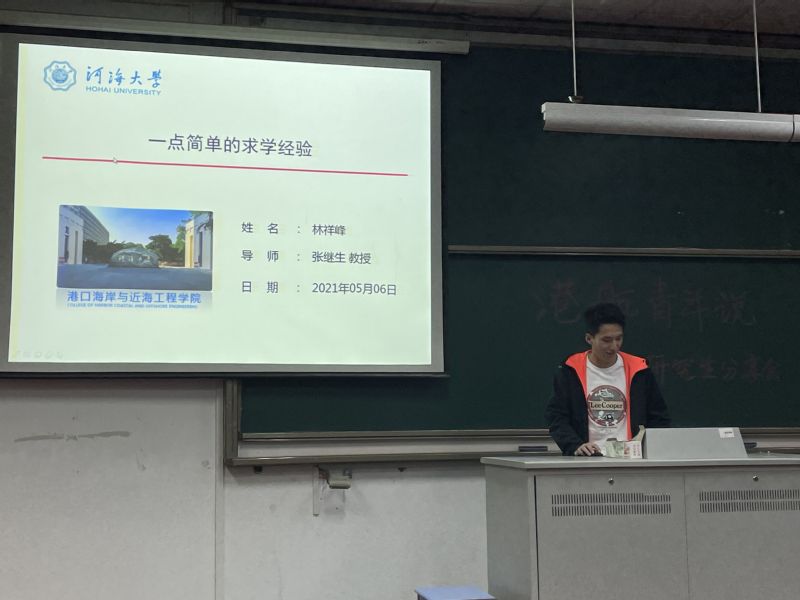 5月6日下午16时,高清av 2018级本科生在水利馆201教室开展“港航青年说——优秀研究生经验分享会”,邀请到2016级直博生林祥峰,2018级硕士冯辉、罗小雅,2019级硕士李智成进行分享。