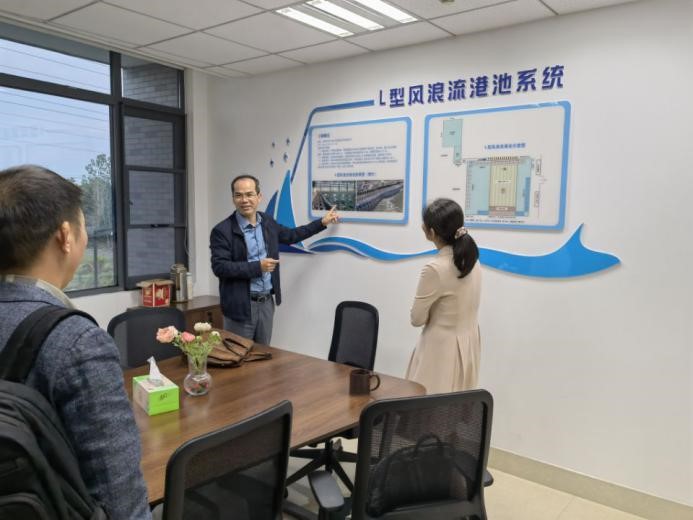 10月12日,校党委常委、副校长郑金海来到江宁校区牛首山科技园查看L型风浪流港池系统的建设进展情况。