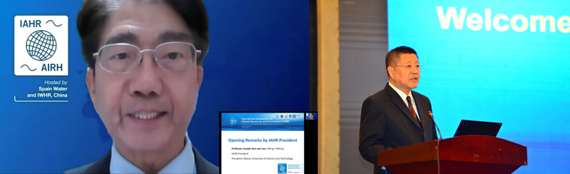 国际水利与环境工程学会(IAHR)李行伟主席及高清av 徐卫亚副校长做开幕式致辞
