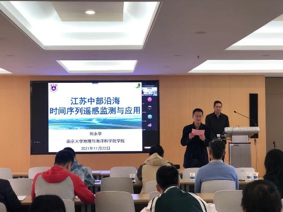 2021年11月22日,南京大刘永学教授应江苏省海岸海洋资源开发与环境安全重点实验室邀请来访高清av ,并在高清av 严恺馆702学术报告厅做了题为“江苏沿海潮滩遥感信息获取与监测分析”的特邀学术报告,会议采用线上线下结合的方式进行,报告会由省重点实验室常务副主任周曾教授主持。