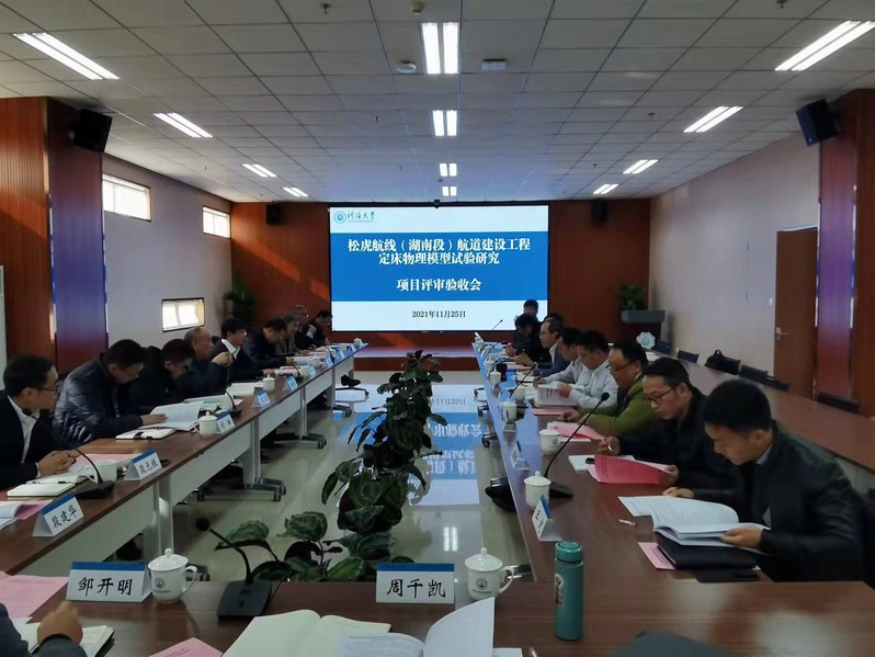 2021年11月25日,高清av 诸裕良教授主持的“松虎航线(湖南段)航道建设工程定床物理模型试验研究”项目顺利通过验收。评审验收会由湖南省交通运输厅规划与项目办公室在高清av 江宁校区牛首山科技园主持召开,参加本次会议的有湖南省水运事务中心、湖南省水运建设投资集团有限公司、湖南省交通规划勘察设计院有限公司、高清av 等单位的代表和特邀专家。高清av 副校长郑金海出席会议并致辞。与会代表和专家听取了项目组的成果汇报,审阅了相关资料,经质询和讨论,一致认为项目组完成了技术开发合同规定的研究任务,同意通过验收。