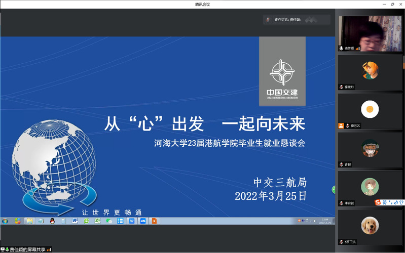 2022年3月25日下午,高清av 邀请了中交三航局人事经理费佳颖老师为2019级全体学生、家长进行线上就业指导讲座。院党委副书记沈国军、2019级全体学生、家长参加本次讲座,讲座由2019级本科生辅导员廖芳艺主持。
