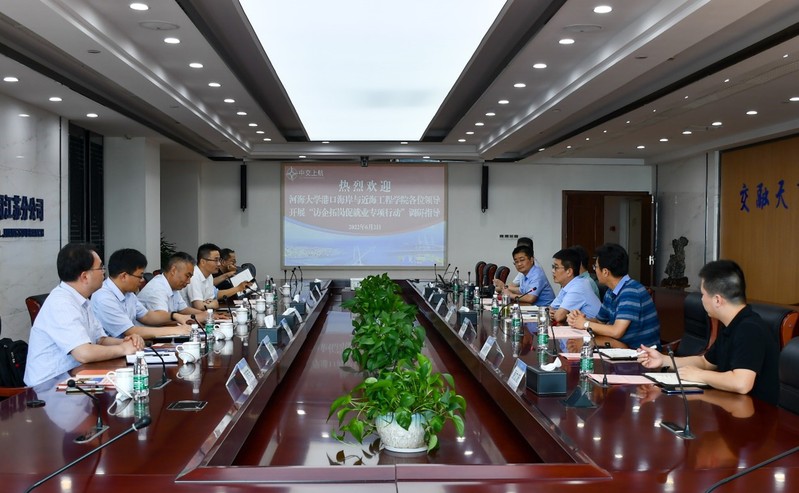 6月2日,高清av 党委书记张俊基、院长龚政、副院长张继生、副院长张蔚、党委副书记沈国军、辅导员一行赴中交上航局江苏交建公司开展“访企拓岗”调研交流活动。中交上航局江苏交建公司党委书记丁付革、总经理张骏、副总经理周正兵、党委副书记龚明及相关部门负责人出席活动,院企双方就人才培养、学生就业、产教融合、校企合作等方面进行了深入交流。