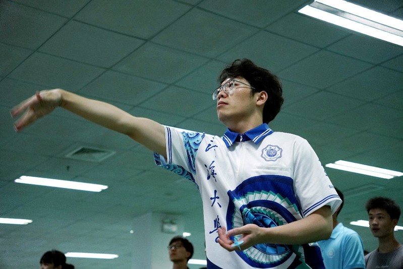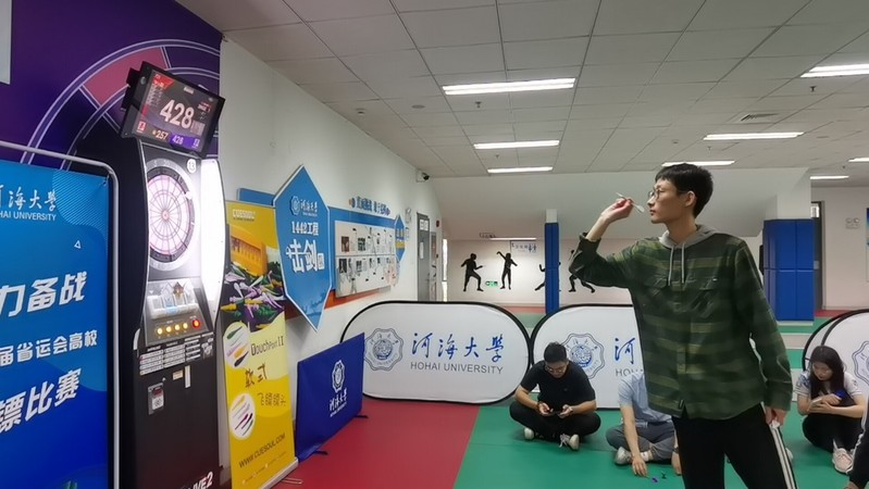 上午8时开始,学院组建的飞镖队以连续3场2:0的好成绩轻松进入八强,在八进四比赛中,以2:1战胜水电院一队,顺利进入四强,后以2:0战胜计信院一队。在冠亚军争夺战中,2018级本科生马臣广、吴昱翀分别结镖帮助团队拿下两局比赛,最终2:3惜败能电院一队,取得第二名的好成绩。