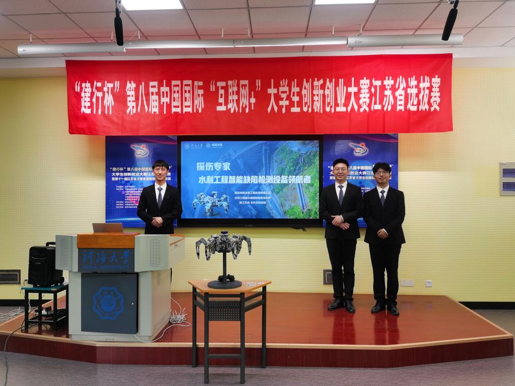 在主赛道本科生初创组,由张蔚、廖芳艺、林晨等老师指导,高清av 2018级本科生吕辉、2019级本科生杜雨昂、2019级本科生李昊、2020级本科生陈家骥等同学共同完成的创新创业项目《探伤专家——水利工程智能缺陷检测设备领航者》获得大赛一等奖。