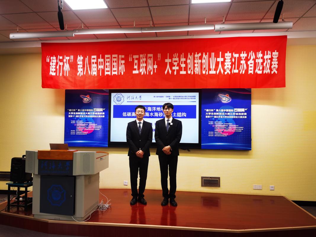在产业赛道,由达波、陈达、侯利军等老师指导,高清av 2021级研究生李益鹏、2019级本科生陶韬、2020级本科生彭润等同学共同完成的创新创业项目《基于海洋地材的低碳高耐久海水海砂混凝土结构》获得大赛一等奖。