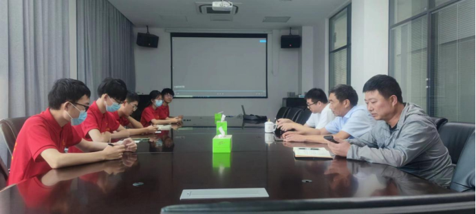 队员们到达江苏省沿海开发(东台)有限公司后,与公司工程管理部王栋经理等相关负责人开展座谈。队员们提前准备了与滩涂湿地利用与保护相关的问题,公司负责人们以公司和盐城当地实际情况向同学们普及湿地保护利用的知识。队员们认真学习和记录,对滩涂湿地的现状和未来发展有了更清晰的认识。