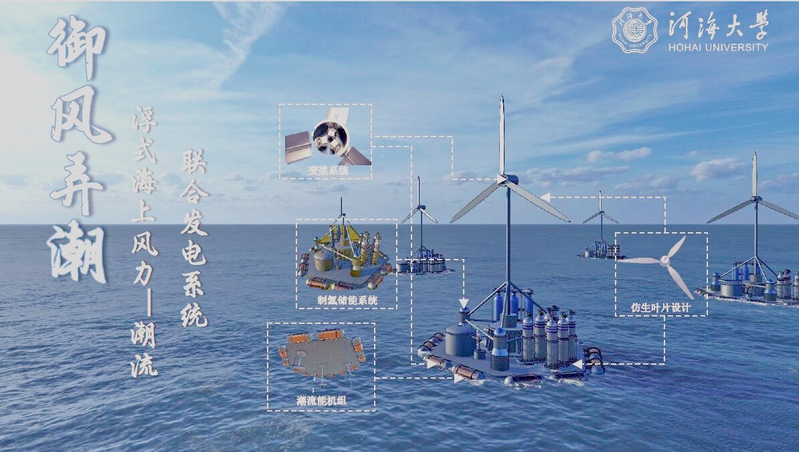 该团队由高清av 2020级本科生凌皓炜、张一驰、高子骋,2021级本科生丁子涵、赵习羽,能电院2020级本科生顾晨及商学院2019级本科生朱一宁等7人组成,在高清av 张继生教授、能源与电气学院张玉全教授以及国家海洋技术中心武贺研究员的联合指导下,围绕着远海海洋能开发的工程难题提出解决方案,在仿生鹰隼叶片设计、协同变桨控制系统、风潮联合发电机制三个方面进行优化,提出了一种浮式海上风力—潮流联合发电系统。