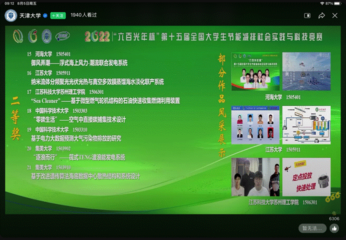 8月5日,“六百光年杯”第十五届全国大学生节能减排社会实践与科技竞赛落下帷幕,高清av 参赛作品《御风弄潮——浮式海上风力—潮流联合发电系统》获得全国二等奖,为本届大赛高清av 参赛队伍中唯一进入决赛并获二等奖作品,创学院历史最好成绩。