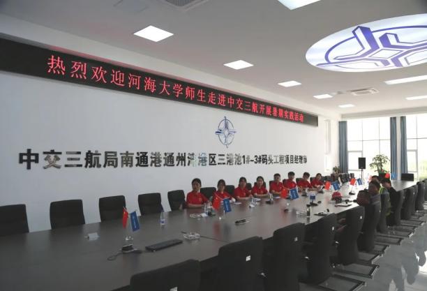 实践团与中交广航局的河海校友进行集中访谈和三对一专访,参与访谈的有2006届校友孟江山、2009届校友李翔、2017届校友江志微,三位河海校友从工作经验、行业就业形势、海外发展等方面为实践团答疑解惑,使学生成长发展、未来就业规划有了更加清晰的方向。