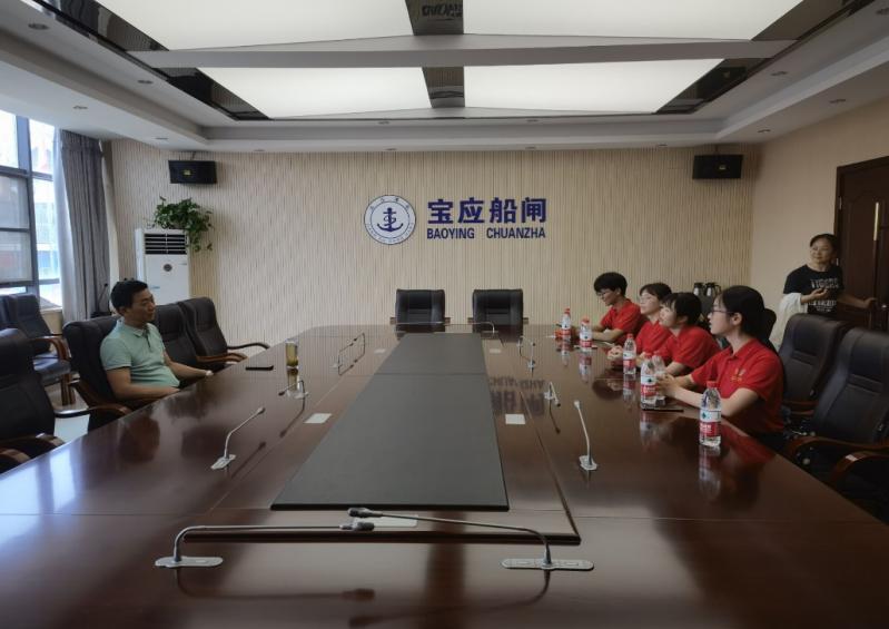 为探寻商船的治理之道,实践团来到扬州市港航事业发展中心宝应船闸运行中心,在扬州港航事业发展中心唐康主任的讲解下学习船闸及航道等水利建筑的基本知识、观察商船运行、船闸通航,对船舶的运行流程有了初步的了解。