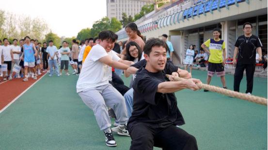 “3,2,1,比赛开始!”随着比赛开始的号令发布,同学们鼓足劲,压着身子,脚擦着地,齐力拉绳子,憋红了脸,手磨出了血,同舟共济,为班级荣誉而战。豆大的汗水沿着鬓角不断落下,震耳欲聋的加油声此起彼伏,紧张热泪的氛围遍布咋整个赛场。