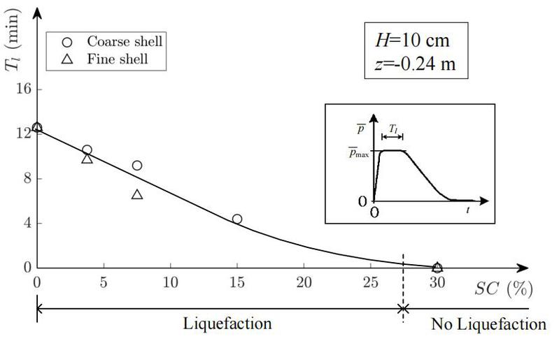 波浪可引起海床复杂动力响应,导致土颗粒间有效应力下降,严重时可造成海床液化现象。液化后的海床几乎失去承载力,对海工结构物的基础稳定性造成危害。研究发现,海床液化敏感性随贝壳砂含量的增大而显著减弱,贝壳砂海床不再发生液化的临界点为贝壳砂含量SC≈30%,并揭示了贝壳砂通过影响土体杨氏模量而改变海床液化进程的机理。相关研究成果为海岸工程结构物基础防护提供了重要的理论基础和技术支撑。