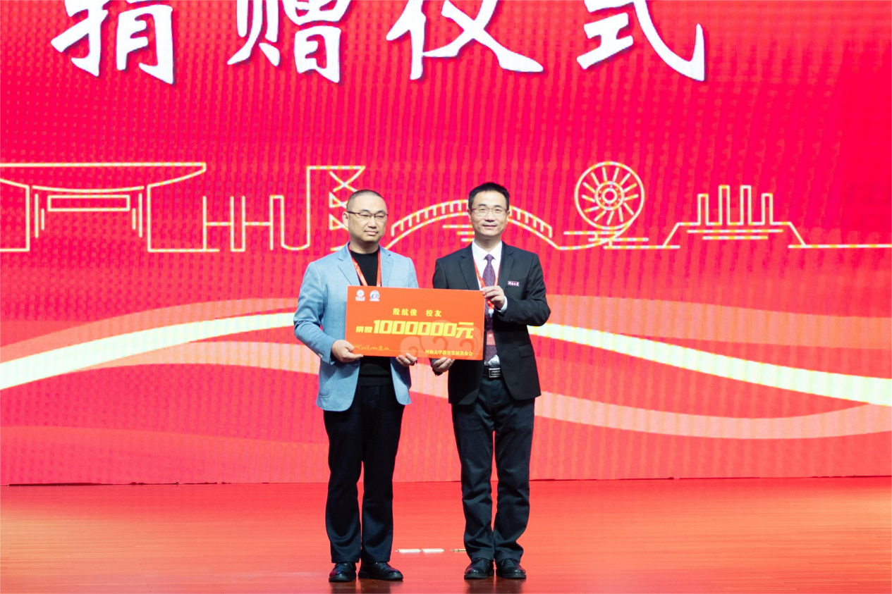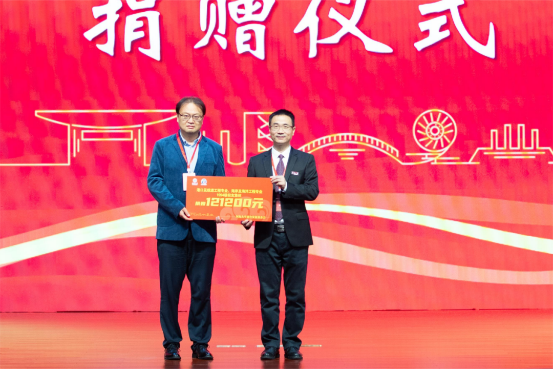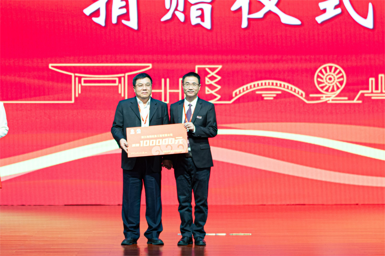 浙江海翔航务工程有限公司总经理、1980级校友洪杰代表单位捐赠