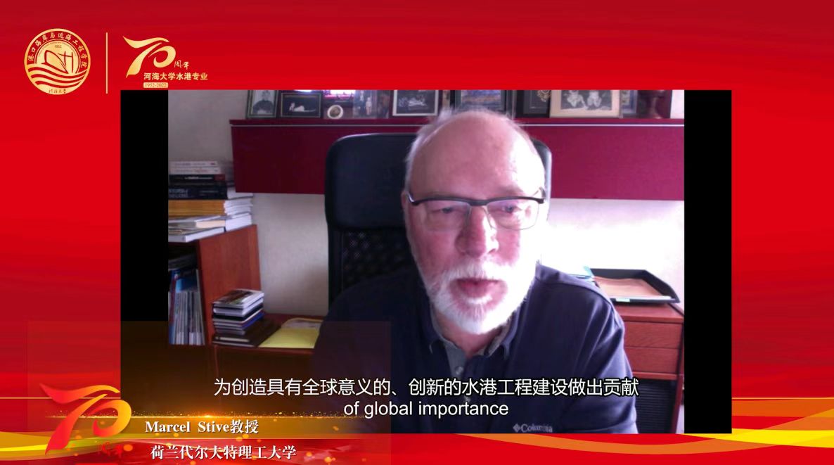 荷兰工程院院士、代尔夫特理工大学Marcel Stive教授,英国皇家工程院院士、南安普顿大学Ian Townend教授发来祝贺视频,中国水运建设行业协会、自然资源部海洋减灾中心、国家海洋环境预报中心、江苏省交通运输厅、广东省水利电力勘测设计院有限公司等政府部门和行业单位,大连理工大学建设工程学部、天津大学建筑工程学院、中国海洋大学工程学院、重庆交通大学河海学院、长沙理工大学水利与环境工程学院、东南大学交通学院、三峡大学水利与环境学院等许多兄弟高校发来贺信,对水港专业创办70周年表示热烈祝贺。
