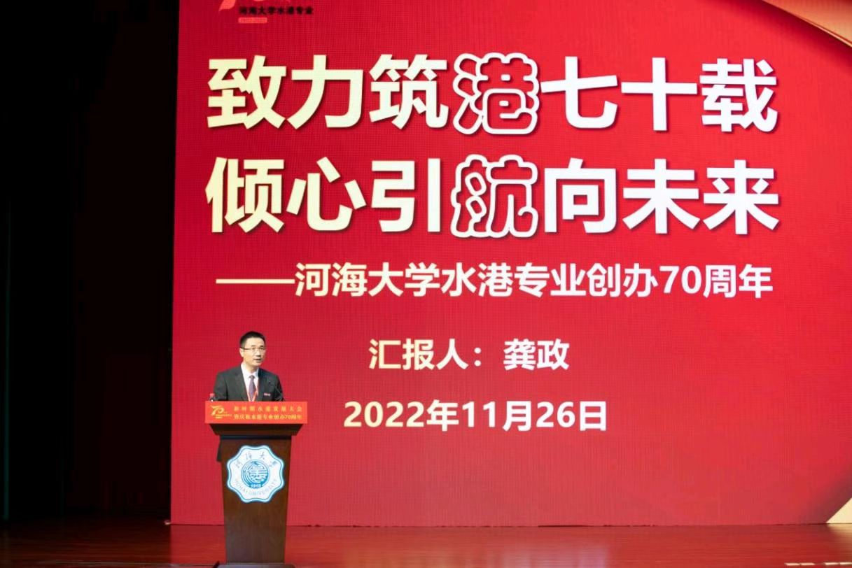 校长徐辉代表学校致辞,向莅临大会的嘉宾、校友表示热烈欢迎,向长期以来关心、支持高清av 建设发展的各界朋友表示衷心感谢。他表示,高清av 是新中国最早培养水港专门人才的高等学府,七十年来,高清av 始终瞄准国家重大战略和行业发展需求,在港口航道工程、河口海岸治理保护、海岸水灾害防治、海洋资源开发利用等学科方向取得了重要的科研成果,培养了一大批水利、水运、海洋等行业的技术骨干和管理精英。他指出,本次大会是高清av 发展史上的重要里程碑,更是迎接挑战、奋进未来的历史新起点,希望学院认真贯彻落实党的二十大精神,牢记“为党育人、为国育才”初心使命,坚持立德树人根本任务,培养造就拔尖创新人才;坚持以国家战略需求为导向,集聚力量开展原创性引领性科技攻关,助力实现高水平科技自立自强,续写水港专业高质量发展的新篇章。