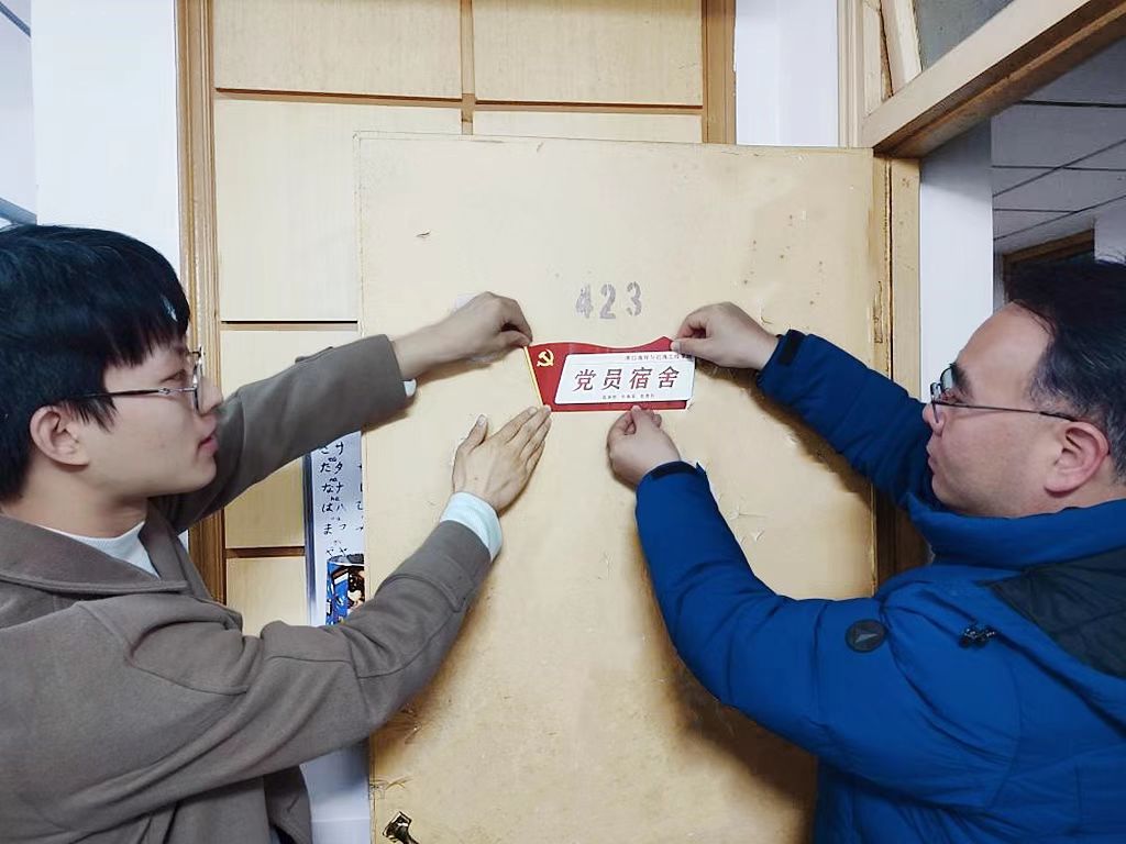 2022年12月2日,为了推进高清av 功能型党支部的建设,打造学生党员主动在社区“亮身份 作表率 担责任”的优良风气,筑牢党员宿舍在学生社区党建与思想政治工作的战斗堡垒作用,高清av 党委书记张俊基、党委副书记沈国军与2020级辅导员林晨一行深入学生社区,为党员宿舍挂牌。本次党员宿舍挂牌仪式涉及学院全部168间包含党员的宿舍,覆盖309名党员。