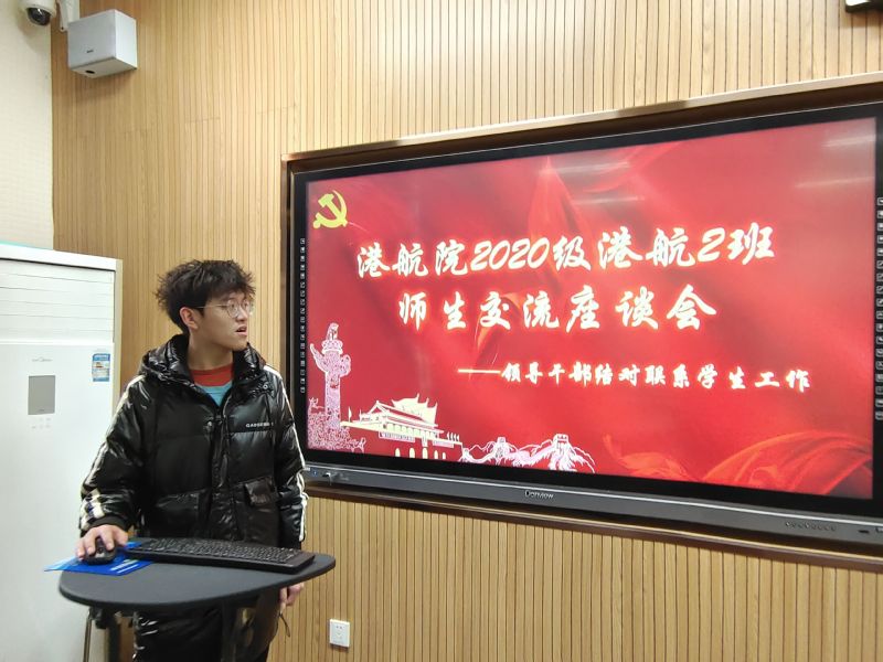 12月5日,2020级港航2班在工程馆116召开师生交流座谈会。高清av 党委书记张俊基、班导师张研教授、辅导员林晨老师出席活动。班会由班长缪宇亮主持。