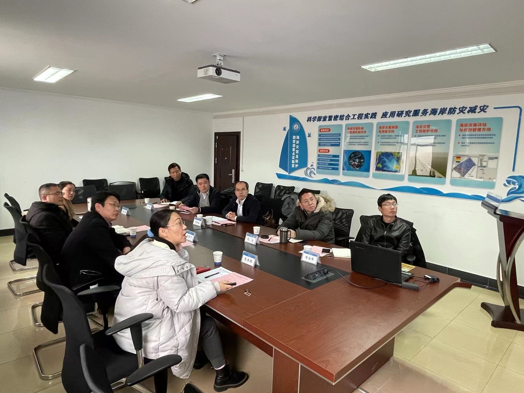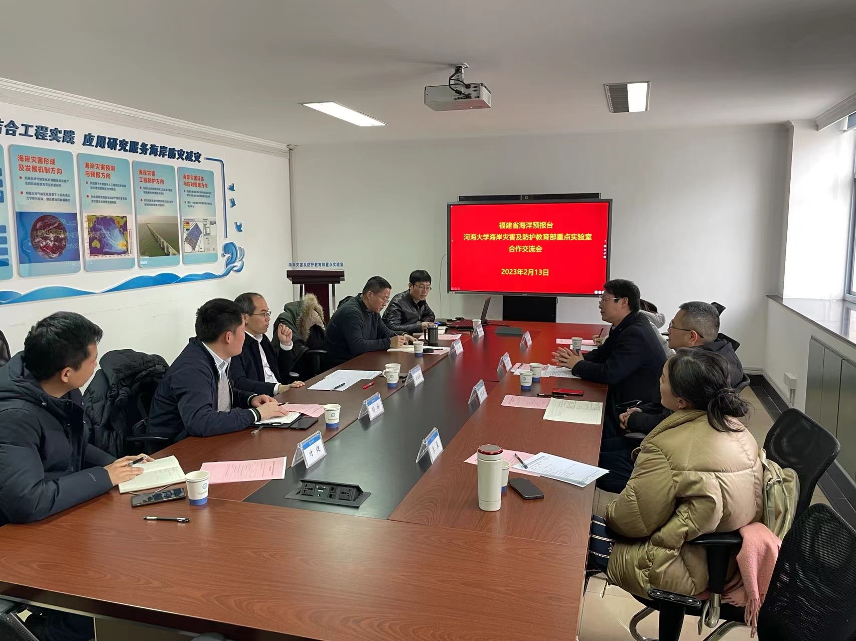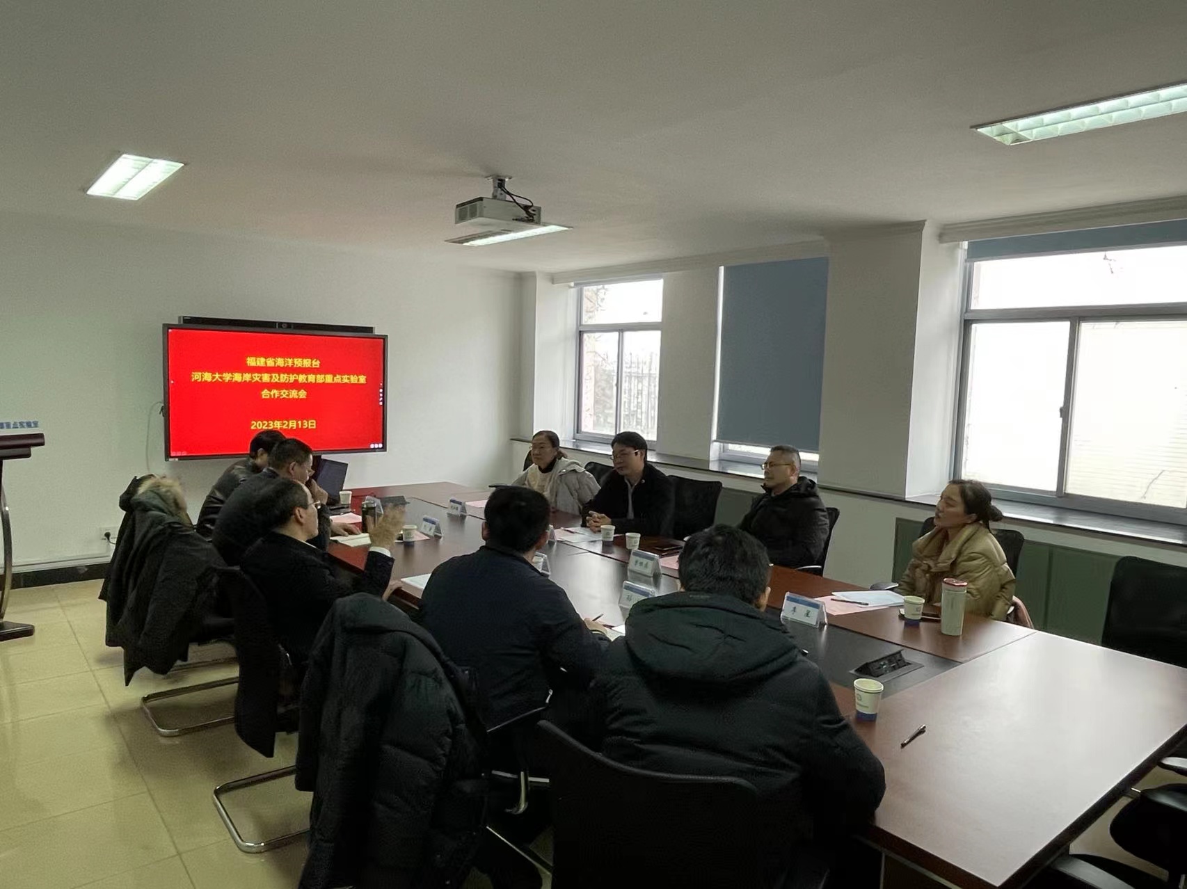 2023年2月13日,福建省海洋预报台曾银东副台长、李雪丁副台长、朱本璐高工和李星高工一行来高清av 访问交流,洽谈了与海岸灾害及防护教育部重点实验室的合作事宜。会议由校科技处孙林副处长主持,在严恺馆404会议室举行。郑金海副校长致辞并作总结发言。高清av 孔俊教授、陶爱峰教授、时健副教授参加了会议。