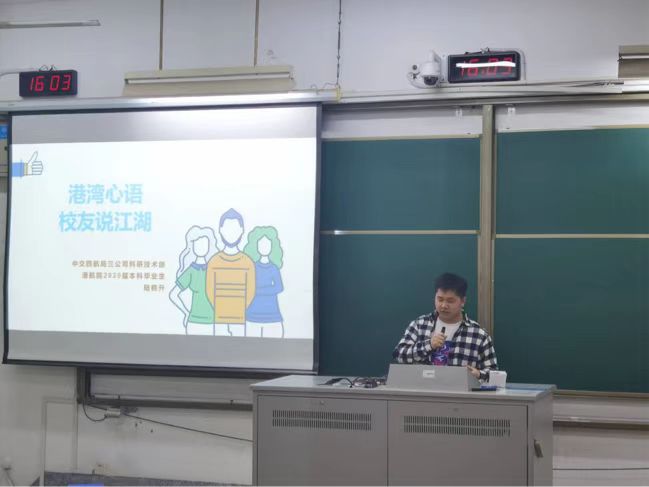 3月20日,高清av 举行第2期“港湾心语 校友说江湖”,活动邀请陆鹤升校友来学院与学生分享了个人成长经历、工作经验,就如何做好本科生职业生涯规划为同学们答疑解惑。2020级全体本科生参加分享会,辅导员林晨主持。