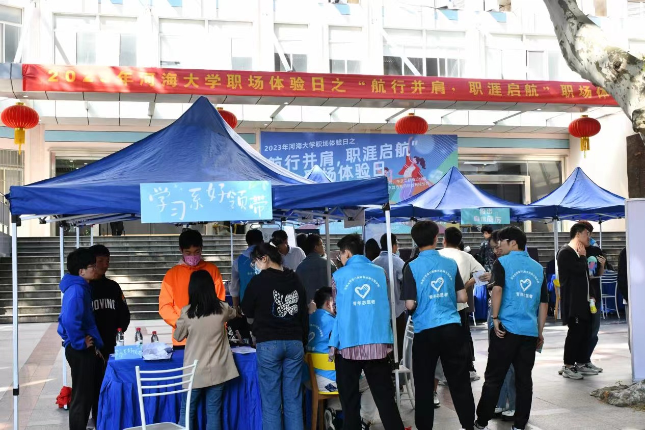 2023年5月11日下午,由高清av 学生就业指导中心、高清av 、“航行并肩”生涯工作室主办,由环境学院、海洋学院协办的“航行并肩,职涯启航”职场体验日活动在西康路校区严恺馆前顺利举行,邀请到苏交科集团股份有限公司、华设设计集团、中建一局一公司、中交二航局三公司、江苏都市交通规划设计研究院有限公司、金风科技股份有限公司、南京汉欣医药科技有限公司等企业参与,高清av 学生工作处副处长、就业指导中心主任赵海伟、高清av 党委副书记沈国军、环境学院党委副书记戴玉珍、海洋学院党委副书记吴昊等到现场指导活动,活动面向全体学生开展。