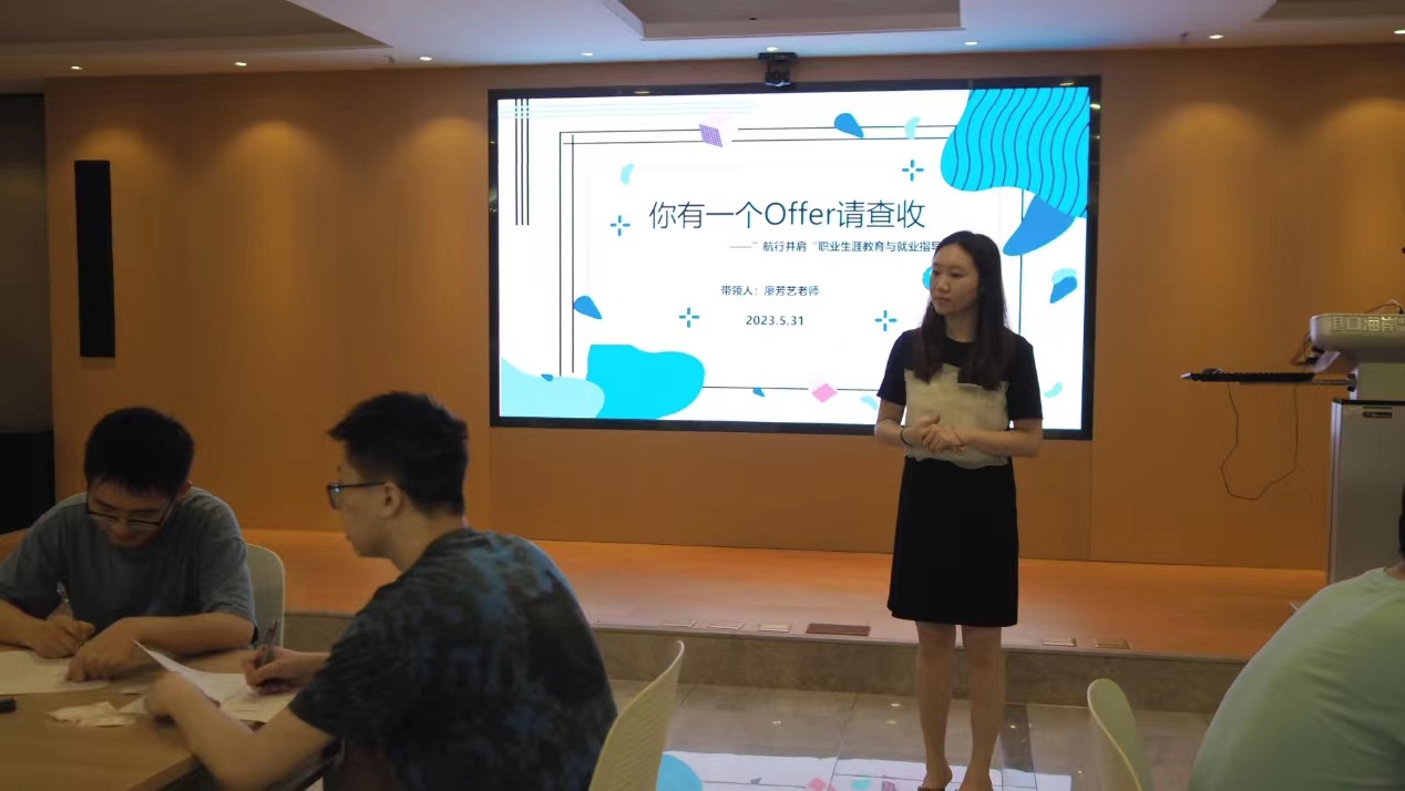 2023年5月31日晚,由高清av “航行并肩”职业生涯教育与就业指导工作室主办的“你有一个offer请查收”辅导活动在西康路校区严恺馆702顺利举行。“航行并肩”生涯工作室带领人廖芳艺老师主持本次活动。