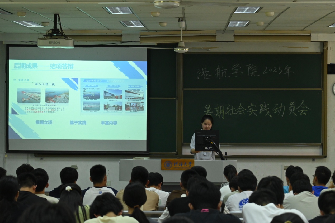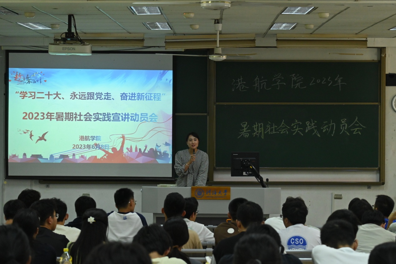 动员大会上,学院团委实践部负责人安冬阳分别从社会实践前期、中期、后期三个时间段向大家介绍了社会实践的工作安排和具体要求。