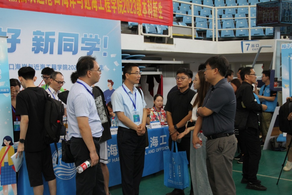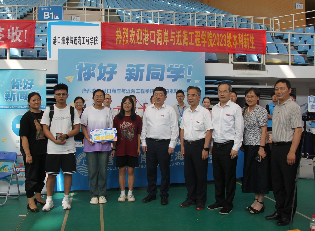 校党委书记唐洪武、校党委副书记郭继超、副校长郑金海,高清av 院长龚政、党委书记张俊基、副院长张蔚、党委副书记沈国军莅临现场指导迎新工作,领导们热情欢迎新生及家长,关心询问了新生报到情况,并合影留念。