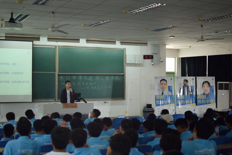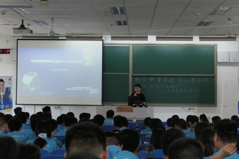杨一凡介绍了南通港通州湾区三港地码头工程的工作过程和施工方案,并为同学们介绍了工程单位的工作环境以及自己在就业过程中的心得与发现;缪雨菲围绕学校各项奖学金、学科竞赛进行分享,并给同学们分享了一些河海生活小妙招;王瑞谦从学习科研、学生工作、社会实践、艺术体育五个方面与同学们分享了自己的大学经历,鼓励同学们在学好专业知识的基础上,多参与实践活动,提升自己的能力。