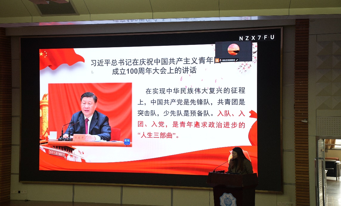 最后辅导员廖芳艺从“为什么要入党、入团”、“如何充分发挥团员模范带头作用”两个问题引出会议主题,指出入队、入团、入党,是青年追求政治进步的“人生三部曲”,青年学子要在思想上端正认识、坚定信仰,更要勇于承担时代赋予的历史使命。