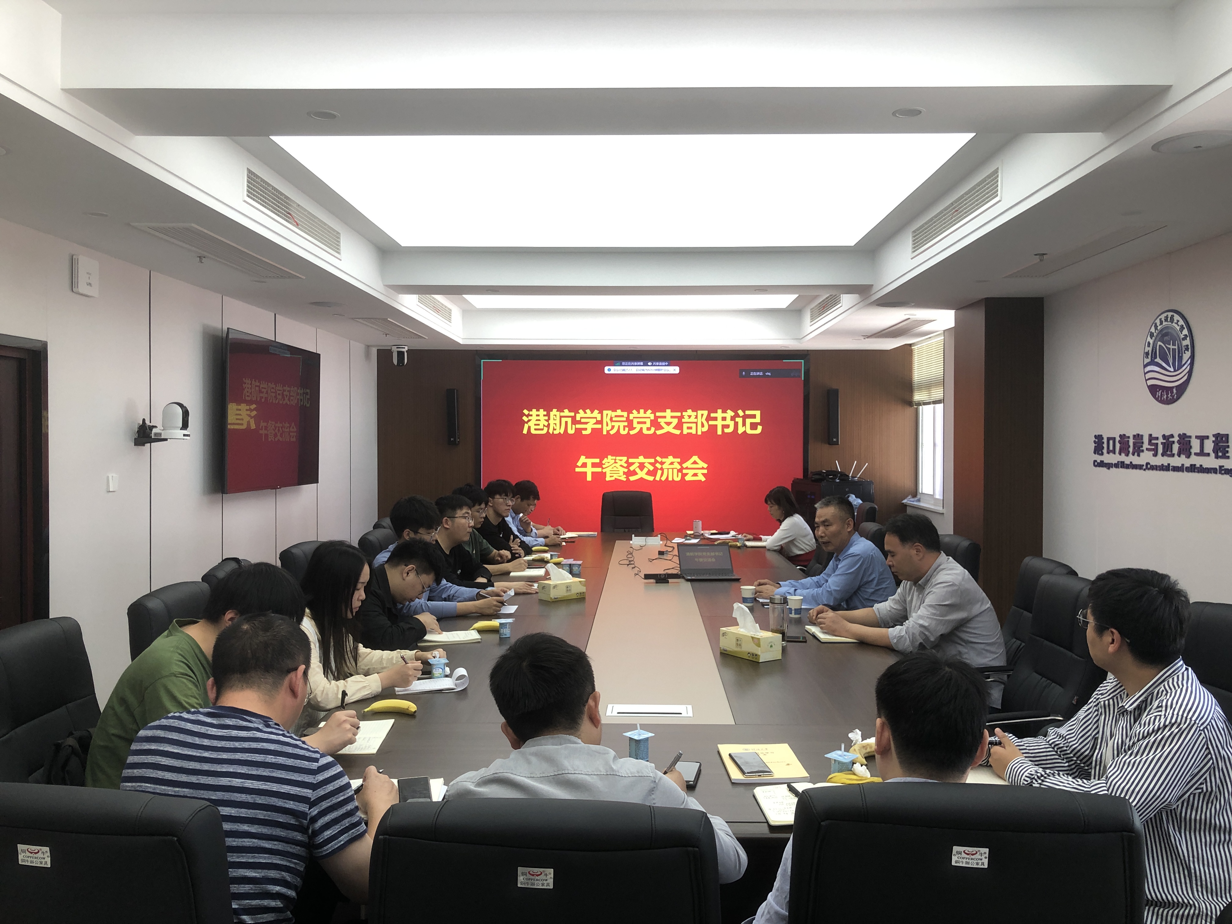 10月18日,学院党支部书记午餐交流会在严恺馆602会议室顺利举行。学院党委书记张俊基、党委副书记沈国军、全体党支部书记、组织员参加活动。
