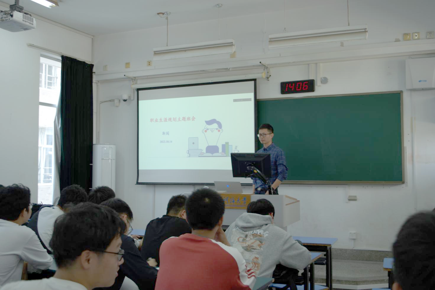 2023年10月16日下午,2023级港航5班在江宁校区致用楼开展“青春不迷路”—职业生涯主题班会,由班导师靳闯老师主持,全体学生参与。本次班会采取“线上+线下”的方式,邀请行业内不同职业的校友分享自身的职涯历程。