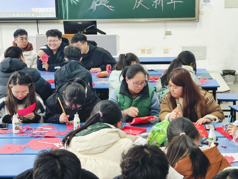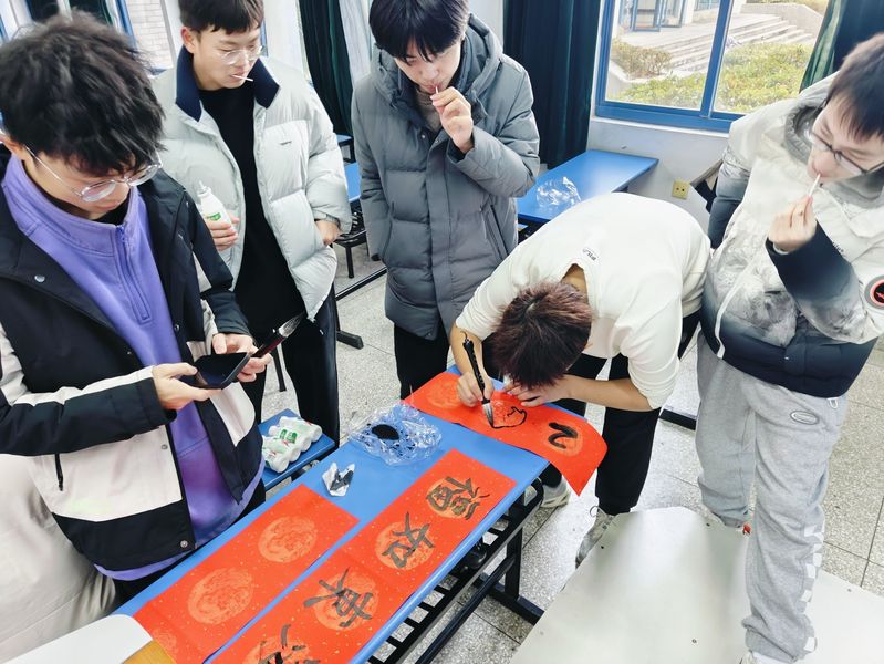 第二场活动为“笔墨对联,刀锋剪纸”,港航三班、四班写对联剪窗花活动。同学们或手持剪刀,专心致志地剪格式各样的窗花,或挥毫泼墨,将对新年的期望和祝福化为一幅幅春联。活动结束后同学们带着自己的成果装饰了自己的宿舍,为宿舍增添了年味。