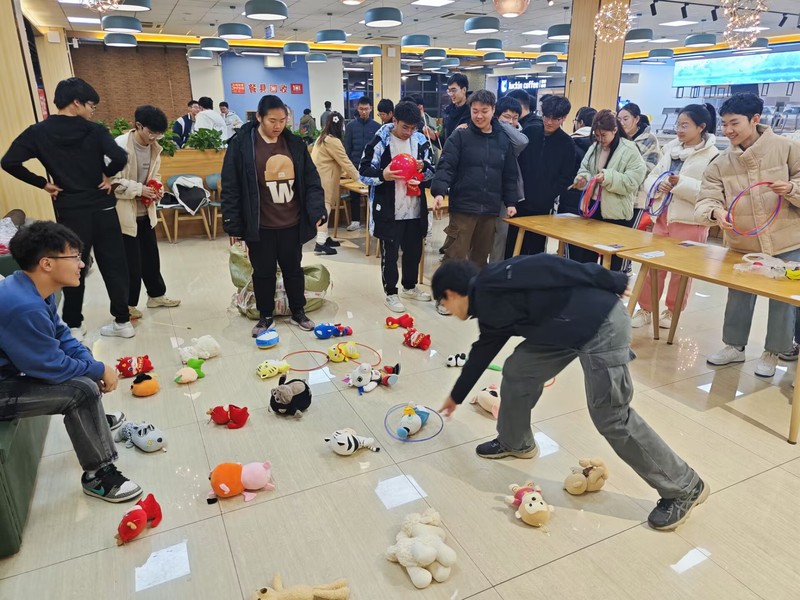 第三场活动为“群英荟萃茶话会”,港航五班、海资一班、船海一班联欢会活动。活动开始,几位同学为大家献上精心准备的才艺表演,现场气氛迅速活跃起来。同学们积极参与投壶、套圈、踩气球等趣味小游戏,赢得了各式各样的小奖品。活动在欢声笑语中圆满结束。