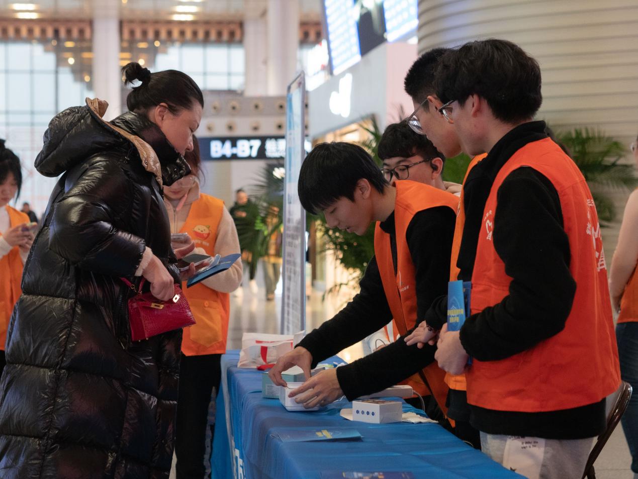 本次志愿服务共设置了三个摊位,分别为防诈宣传摊位、眼镜清洁摊位与铁路指引帮助摊位。高清av 志愿者们主动向来往旅客讲解常见的诈骗手段,提醒旅客们提高防范意识。针对行人需求,出门在外眼镜很容易模糊且不方便清洁,眼镜清洁摊位的志愿者们使用超声清洁工具帮助戴眼镜的旅客清洗眼镜,旅客们拿到干净的眼镜都露出了满意的笑容。
