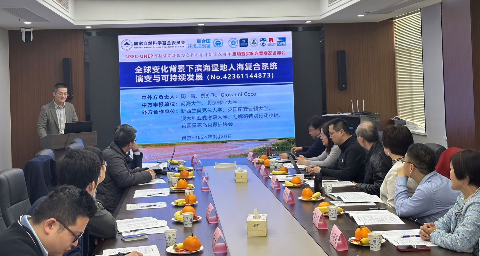 2024年3月20日,高清av 周曾教授作为项目负责人的国家自然科学基金委员会-联合国环境规划署(NSFC-UNEP)可持续发展国际合作科学计划重点项目“全球变化背景下滨海湿地人海复合系统演变与可持续发展(项目批准号:4236114487)”项目启动会在南京顺利召开。