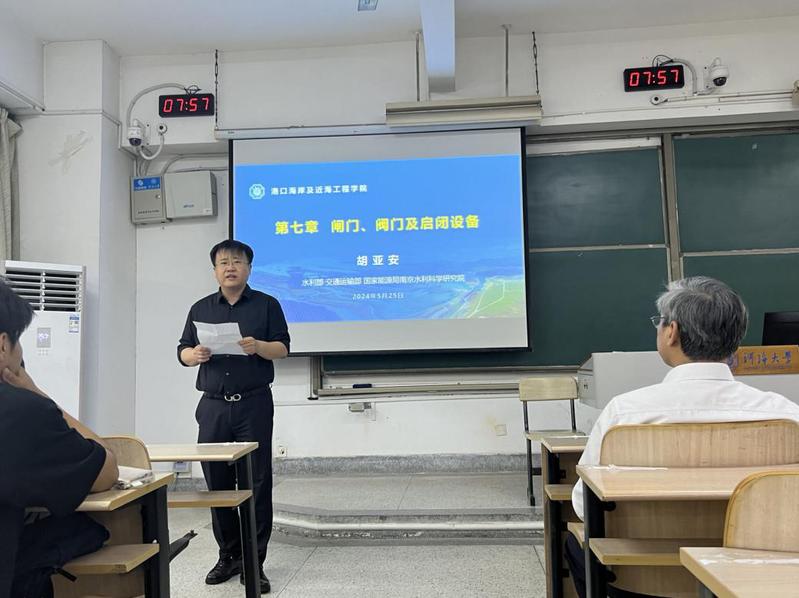 为推动国家级一流本科专业建设,高清av 开展了“院士进课堂”系列教学活动。5月25日上午,学院特别邀请中国工程院院士、南京水利科学研究院水工水力学研究所所长胡亚安院士为学院2021级本科生讲授《渠化工程》课程。渠化工程课程教学团队教师、2021级全体本科生参加。