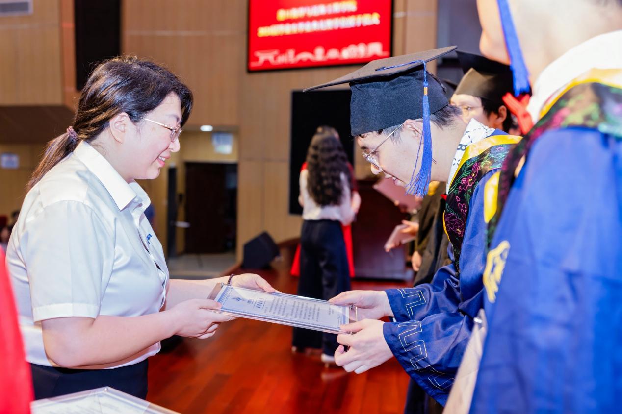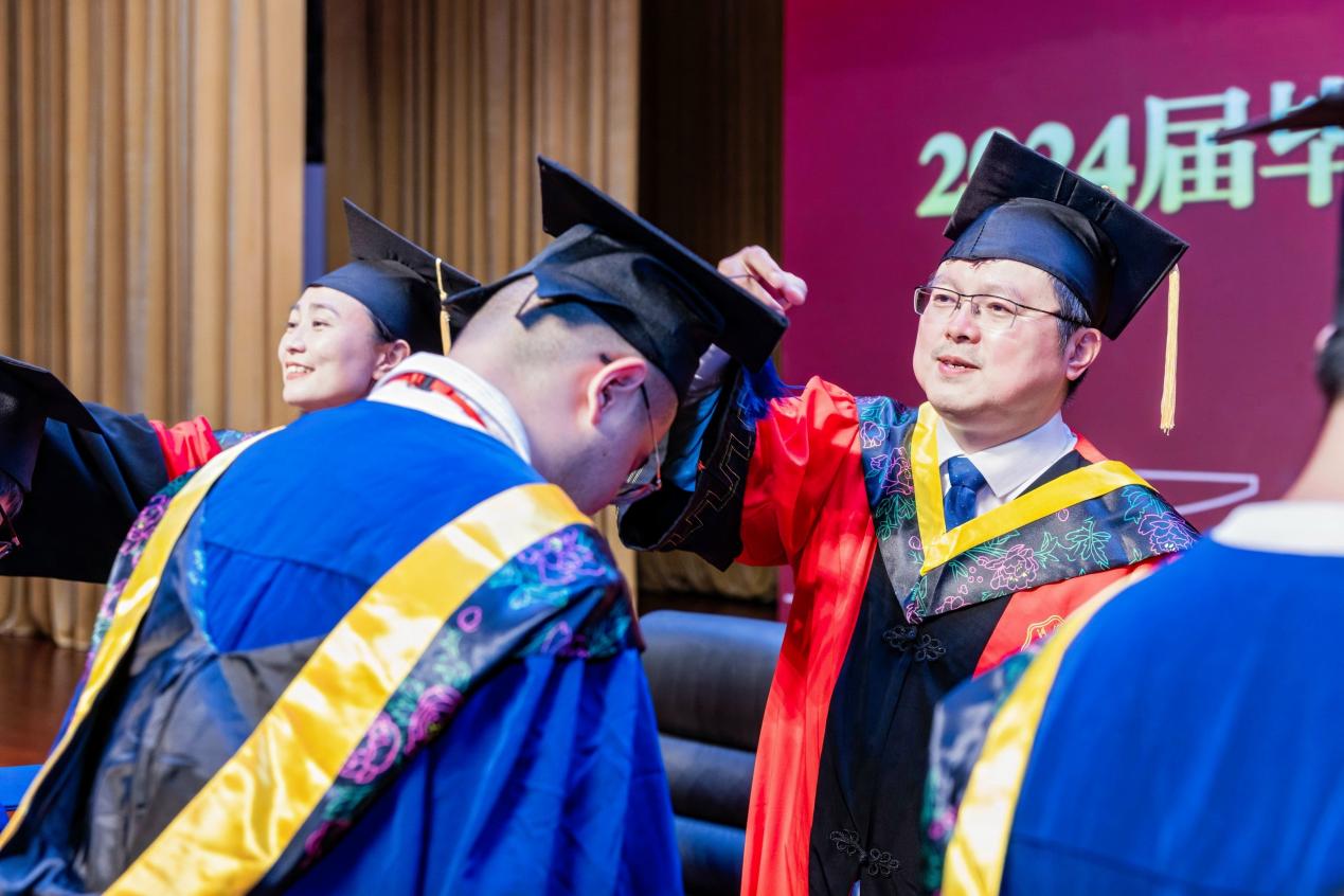学院领导为全体2024届毕业生颁发学位证书并拨帽穗。