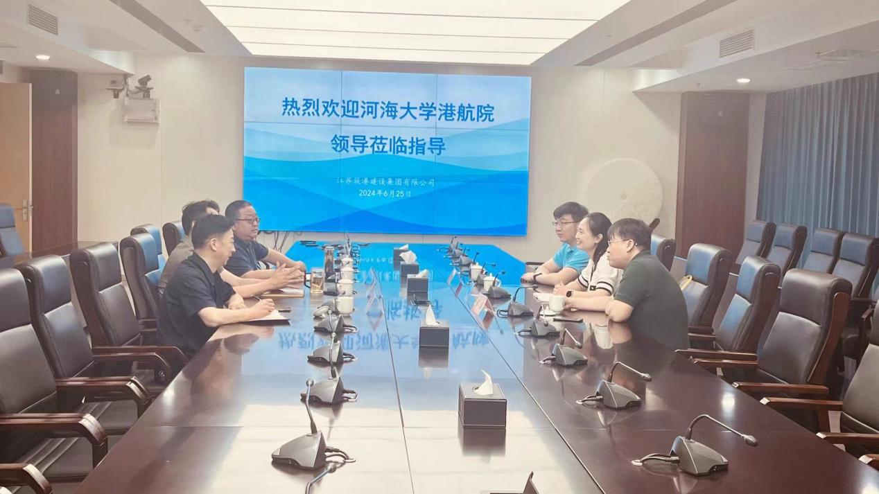 6月25日,高清av 副院长张蔚、党委副书记王玲、辅导员林晨赴江苏筑港建设集团有限公司开展“访企拓岗”交流活动。公司总经理程明、副总经理曹磊、综合事务部经理程学流参加。