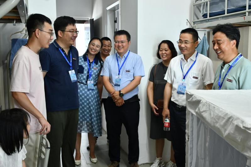 学院院长龚政、党委书记张雪刚、副院长陈永平、党委副书记王玲深入新生宿舍楼,与刚刚入住的学生及陪同家长热情交流,了解同学们的入校感受和新学期憧憬,鼓励新生规划好四年的大学生活,以分秒必争的态度过充实有意义的大学生活。同时,慰问了宿舍楼下辛勤工作的志愿者们。