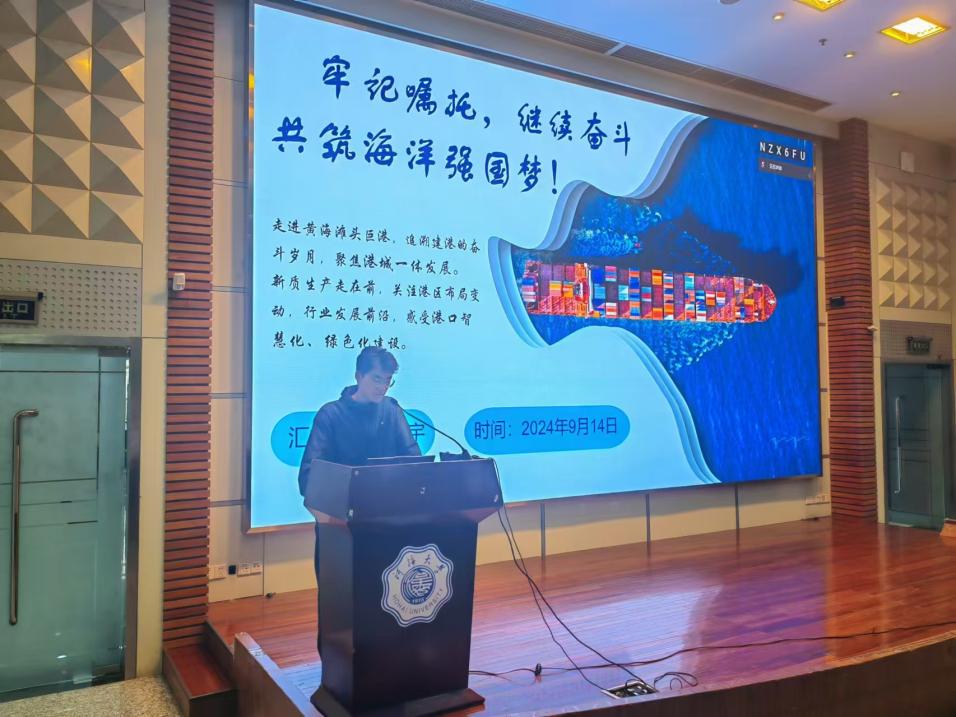 赵振宇详细介绍了在日照港区考察调研的过程及成果,分享心得,并为新生参与社会实践提出宝贵建议,加深新生对社会实践的兴趣。
