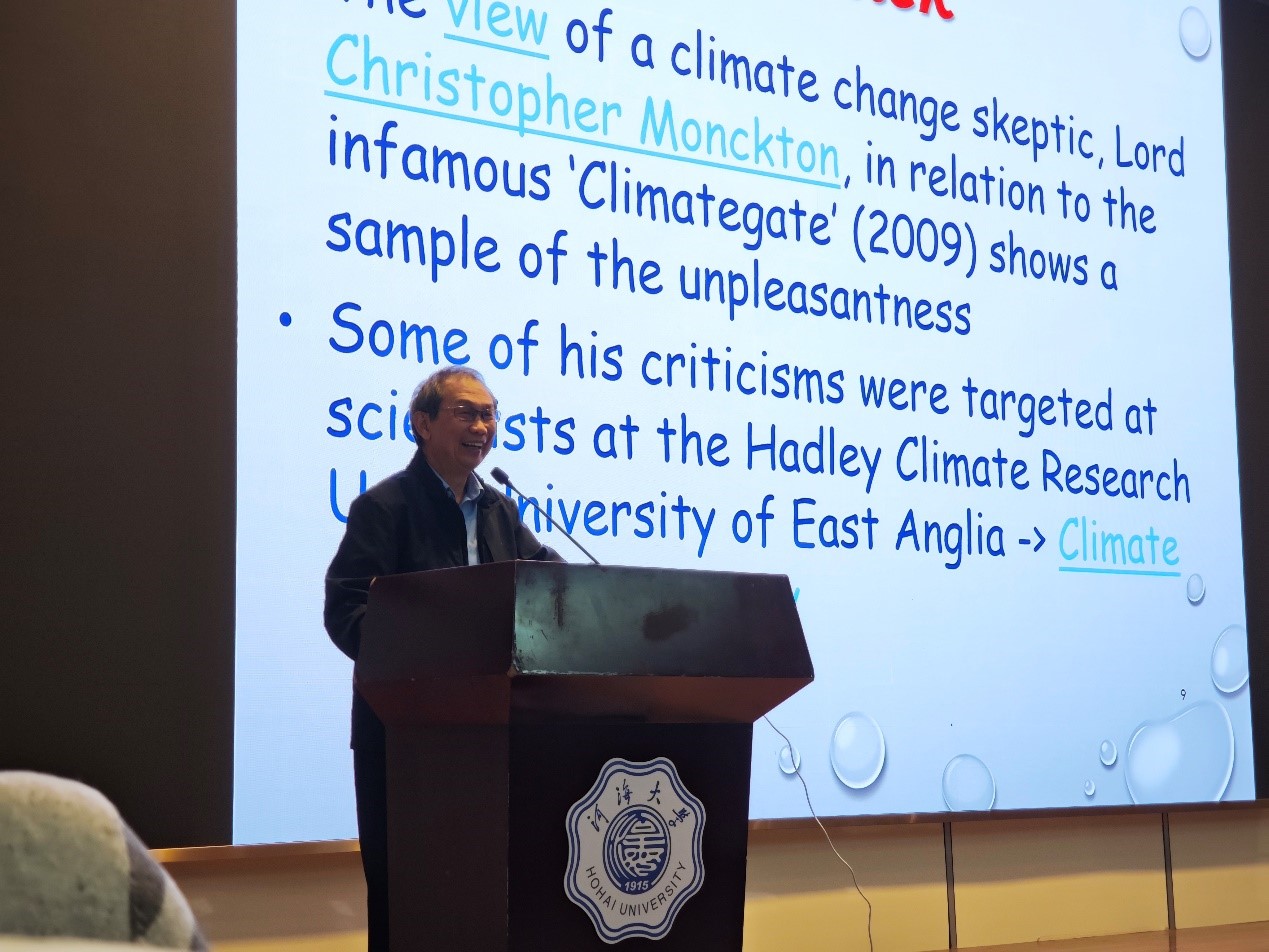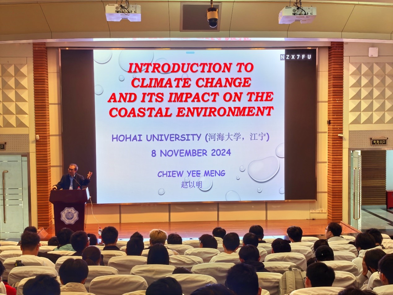 11月8日,高清av 在江宁会议中心二楼举行了学术报告会,邀请了南洋理工大学Chiew Yee Meng教授带来题为《Introduction to Climate Change and Its Impact on the Coastal Environment》的讲座。学院2022级学生及2024级新生参加,活动由2024级辅导员林晨主持。